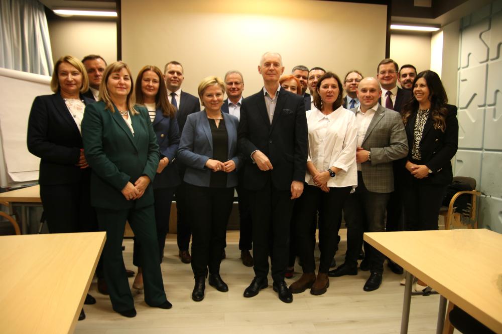 W dniach 23-24 listopada br. po raz kolejny Dyrektorzy Wojewódzkich Urzędów Pracy spotkali się stacjonarnie, by m.in. podsumować funkcjonowanie Zespołów Zadaniowych w poszczególnych obszarach rynku pracy, omówić wsparcie kształcenia zawodowego, szkolnictwa wyższego oraz nowoczesnych technologii w poradnictwie zawodowym. W dniach 23-24 listopada 2023 r. w Karpaczu, odbyło się kolejne spotkanie Konwentu Dyrektorów WUP. W dniu 23 listopada 2023 r. Pani Zuzanna Bielawska Przewodnicząca Konwentu Dyrektorów WUP powitała uczestników spotkania i otworzyła obrady Konwentu. Podczas spotkania prelegent reprezentujący Centralny Ośrodek Informatyki - Pani Renata Włodarczyk Starszy Specjalista Zespołu Wsparcia, omówiła zagadnienia związane z obowiązkiem stosowania e-Doręczeń. Następnie, dzięki uprzejmości Pana Jakuba Mielczarka Dyrektora Biura Związku Województw RP, uczestnicy spotkania uzyskali wsparcie ze Związku Województw RP w postaci szkolenia z zakresu e-Doręczeń, przeprowadzone przez Pana Beniamina Rozczyńskiego z Kancelarii Prawnej Dr Krystian Ziemski & Partners. W II części spotkania, Koordynatorzy Zespołów Zadaniowych działających przy Konwencie Dyrektorów WUP, tj. Pan Michał Bruski – Koordynator Zespołu ds. badań i analiz rynku pracy, Pani Bożena Babynko – Koordynator Zespołu ds. poradnictwa zawodowego, Pan Adam Biernat – Koordynator Zespołu ds. rozwiązań systemowych funkcjonowania Publicznych Służb Zatrudnienia, Pani Edyta Klimowska-Bobula – Koordynator Zespołu ds. uczenia się przez całe życie oraz Pan Grzegorz Kozłowski Kierownik Zespołu ds. Kontroli w Katowicach w zastępstwie za Panią Izabelę Bywalec – Koordynatora Zespołu ds. zwalczania nadużyć finansowych, przedstawili podsumowanie funkcjonowania Zespołów zadaniowych w II półroczu br. W dniu 24 listopada odbyły się prelekcje dotyczące programów i projektów realizowanych przez Wojewódzkie Urzędy Pracy. Pan Piotr Krzesiński Naczelnik Wydziału Badań i Analiz WUP w Lublinie przedstawił projekt realizowany w ramach Krajowego Planu Odbudowy i Zwiększenia Odporności – „Wsparcie rozwoju nowoczesnego kształcenia zawodowego, szkolnictwa wyższego oraz uczenia się przez całe życie". Reprezentanci WUP w Rzeszowie, przedstawili dwa projekty realizowane przez Urząd: Pan Piotr Moroch Kierownik CliPKZ zaprezentował „Nowoczesne technologie w poradnictwie zawodowym – oprogramowanie wirtualnej rzeczywistości" natomiast Pani Agata Gadziała Z-ca Kierownika Wydziału Projektów Własnych przedstawiła dotacyjny projekt własny WUP w Rzeszowie - „Rozwój przedsiębiorczości wśród ludzi młodych". Pani Alina Zaręba Wicedyrektor DWUP omówiła wyniki podsumowania rozliczeń wniosków z Tarczy antykryzysowej oraz przedstawiła do dyskusji projekt stanowiska Konwentu Dyrektorów WUP w sprawie zalecenia NIK dla MRiPS dotyczącego rozliczeń wniosków z Tarczy antykryzysowej COVID-19. Pani Zuzanna Bielawska Przewodnicząca Konwentu Dyrektorów WUP podziękowała uczestnikom za zaangażowanie i aktywny udział podczas spotkania oraz zamknęła obrady Konwentu Dyrektorów WUP w Karpaczu.